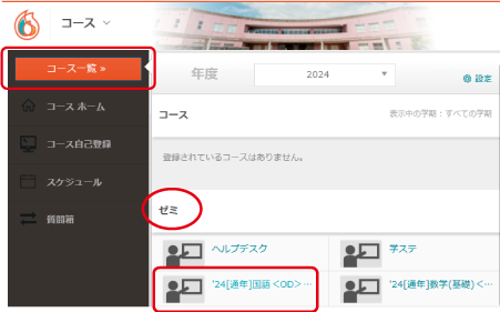 ②「コース一覧」—ゼミから受講講座を選択