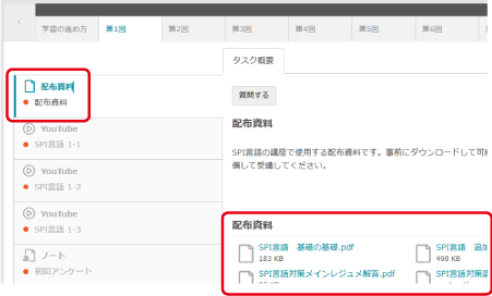「配布資料」がある講座では、配布資料をダウンロードして印刷しておくとGood!